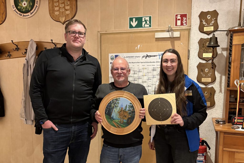Am 10. Januar 2025 fand das traditionelle Strohschießen im Schützenheim statt, bei dem sich 13 Schützinnen und Schützen in der Blattl-Ring-Wertung miteinander maßen. Teilnahmebedingung war ein kreativ verpacktes Geschenk und 10 Schuss aus Luftgewehr oder Luftpistole. Abwechselnd durften sich die Schützen mit dem besten Gesamtergebnis und dann mit dem besten Schuss am Geschenketisch bedienen. Dieses Jahr war Daniela Hartl mit der besten Serie als Erste dran.